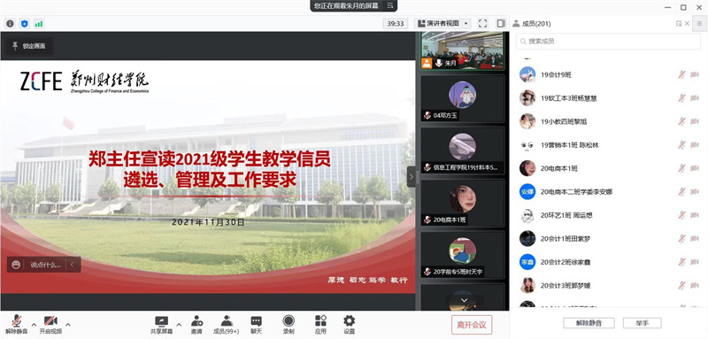 11月30日下午,开云官网在德正楼第一学术报告厅召开了2020—2021学年学生教学信息员表彰暨聘新会议。督导办、教务处相关负责人,教学质量监测与评估中心全体人员及各二级学院信息员代表参会。会议采用线上线下相结合的方式进行,由教学质量监测与评估中心郑主任主持。