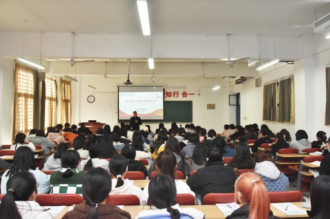 为深入贯彻落实党的十九届六中全会精神,12月2日下午,校党委书记李国强以《做可为能为有为的青年一代》为题,在育爱楼213教室为教育学院2021级小学教育本科1班和2班的学生上了一堂精彩生动的形势与政策课。