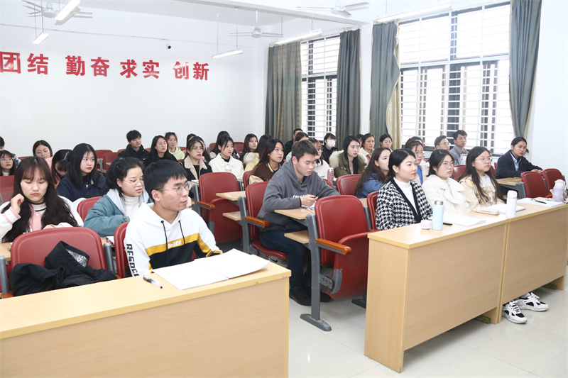 形势与政策课是高校思想政治理论课程体系中的重要组成部分,是对大学生进行思想政治教育的重要阵地。为进一步贯彻落实习近平总书记在学校思想政治理论课教师座谈会上的重要讲话精神和中共中央办公厅、国务院办公厅印发的《关于深化新时代学校思想政治理论课改革创新的若干意见》文件精神,推动开云官网思政课改革创新,12月9日,校监事会副主席王艳珍在育爱楼206教室为19级酒店管理本科1班学生讲授了一堂精彩纷呈的形势与政策课。