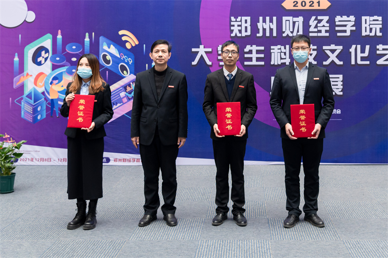 副校长方润生分别为2020年大学生科技文化艺术节获奖学生代表,艺术设计学院、智能工程学院和教育学院三个优秀组织单位颁奖。校监事会主席李庆阳分别为2021年挑战杯获奖作品学生代表,管理学院、智能工程学院和商学院三个优秀组织单位颁奖。