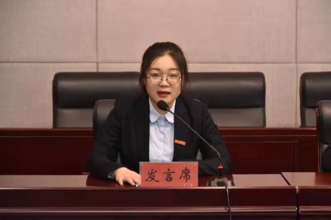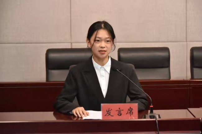 “先进个人”代表商学院辅导员鲁梦琳发言