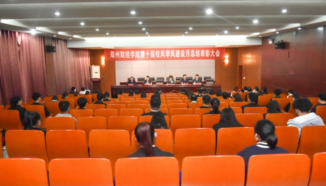 副校长陈静作总结讲话,她分别从爱国教育、实践教育、安全教育、文化教育、榜样教育五个方面回顾了第十届校风学风建设月活动。就进一步深化校风学风建设,她提出了四点希望,一是希望同学们锤炼高尚品格,将全面发展和个性发展紧密结合起来;二是希望同学们正确把握学习方向,做到学以致用、用以促学、学用相长;三是希望全体学生工作者加强学习、锻炼能力,不断提高自身育人水平,努力成为专家化的学生教育管理者;四是希望全体师生同心同向同力同行,敢于担当、勇于担当、善于担当,以脚踏实地的坚定和仰望星空的勇气,共同烙印郑财精神。