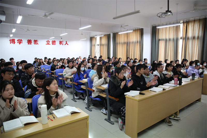 陈静以《奋进新时代,启航新征程》为主题,从“躬逢盛世,共襄盛举;凝心聚力,笃行致远;同力协契,踔厉奋发”三个方面为学生带来了一堂深刻且透彻的理论课。