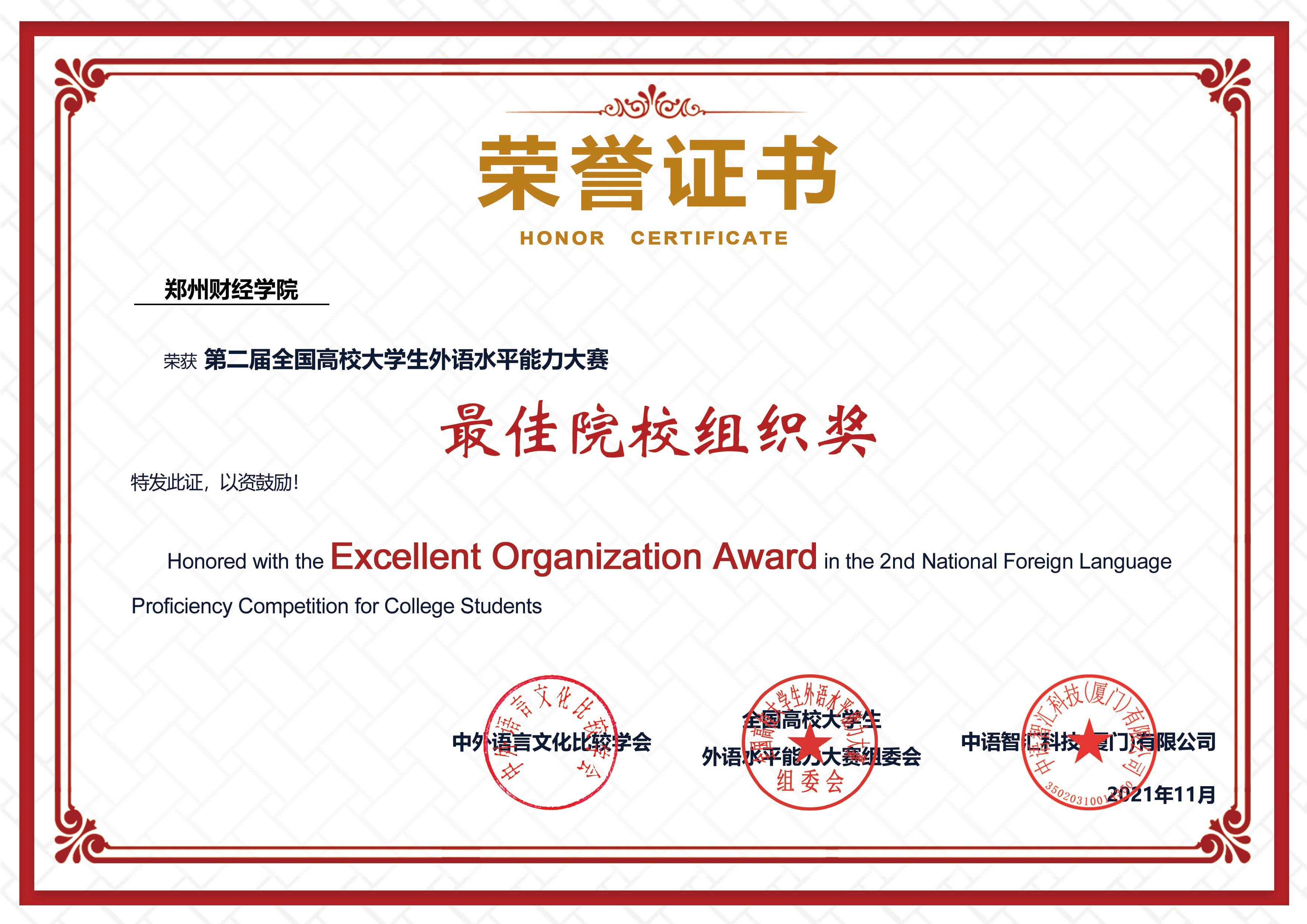 开云官网学子在2021年第二届全国高校大学生外语水平能力大赛中喜获佳绩