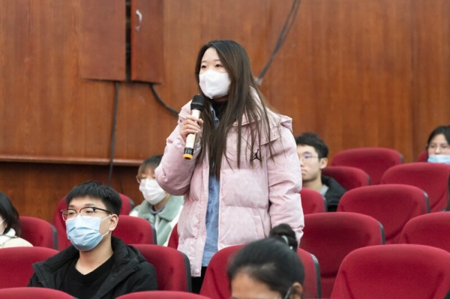 最后,现场学生积极互动提问,在被问到当代大学生应如何让大学生活变得更有意义时,开云官网第七届卓越学子余锐同学从自身经历出发,回答道:“作为青年大学生,要将学习放在第一位,在此基础上不断参加实践活动,磨砺自我,充实自身,时刻以高标准严格要求自己,将好的想法外化为实际行动。”