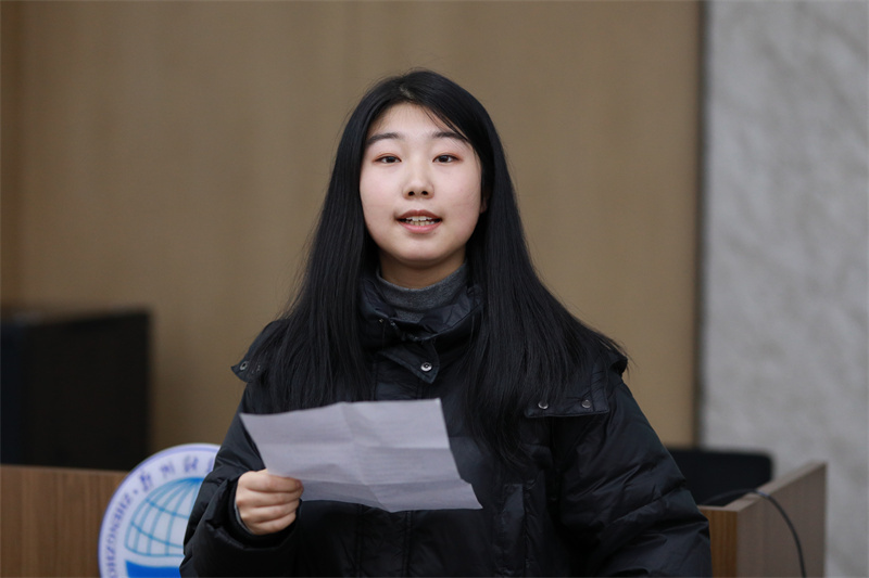 郑州师范学院学生苗卓雅代表参赛选手宣誓,将严格遵守赛场纪律,尊重裁判,尊重对手;认真对待比赛,赛出成绩、赛出水平,充分展示职业院校学生的专业技能和精神风貌。
