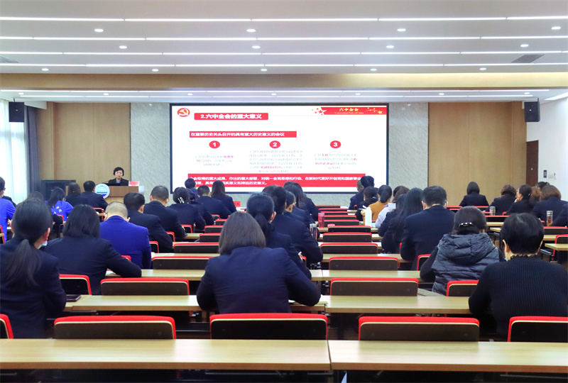 朱金瑞教授以《以史为鉴 勇毅前行——深入学习贯彻党的十九届六中全会精神》为题,运用生动的案例、丰富的史实、详实的数据,系统阐述了党的十九届六中全会基本情况和重大意义,全面解读了全会精神实质和丰富内涵,并强调要以党的百年奋斗历史经验为鉴,深入学习贯彻党的十九届六中全会精神,为确保高质量建设现代化河南、确保高水平实现现代化河南而努力奋斗。
