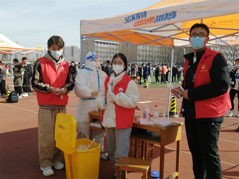 3月1日,信息工程学院学生在学校田径场参与了全校核酸检测志愿服务,主要负责在核酸检测现场引导同学们有序排队,提醒大家提前打开郑好办app,为要做核酸的同学扫码,并协助医护人员开展核酸检测工作,在整个过程中始终坚守岗位。志愿服务活动结束后,他们纷纷表示收获颇丰,为自己能够帮助到别人而感到骄傲,并表示在今后的生活中会从一点一滴的小事做起,服务他人,提升自己!
