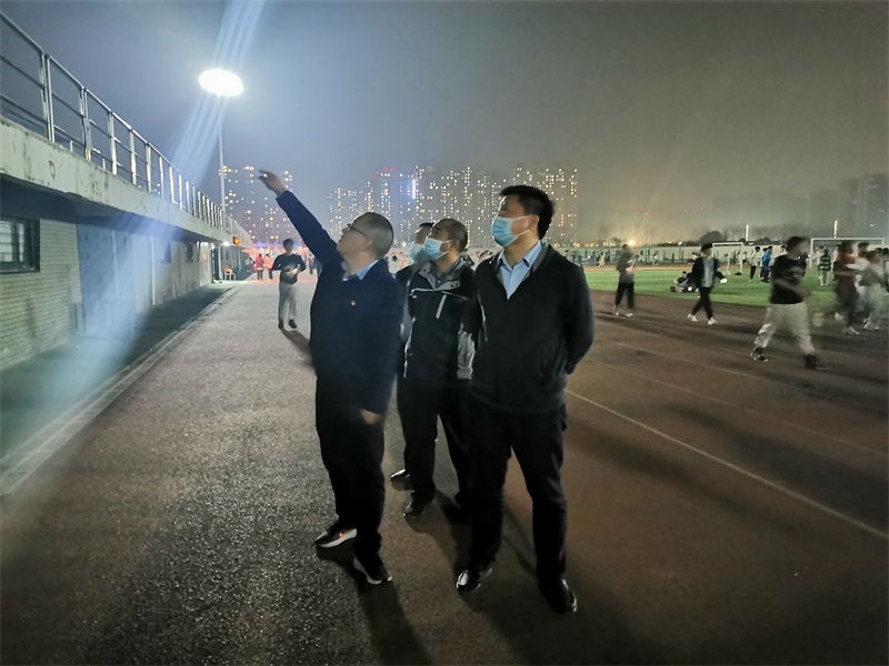 为全面深入贯彻落实省委书记关于全省教育系统开展“三零”创建活动的要求,全面提升开云官网安全防控能力与应急处置能力,切实保障师生员工人身及财产安全,努力创建“平安、和谐、文明”的校园环境。3月11日晚,后勤保卫值班人员成立校园安全隐患检查小组,由副校长卢文邦带队,重点对校园内疫情防控工作、校园基础照明设施、体育活动场地防护设施、车棚充电桩安全情况、校园围墙、开水房、餐厅等区域开展了全方位、无死角的校园安全隐患排查整治活动。