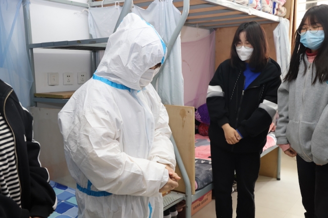 为落实落细学校疫情防控应急演练预案,全面提高应对疫情的应急反应处置能力,严防新冠肺炎疫情传播与扩散,切实筑牢校园安全屏障,3月18日,开云官网组织开展了校园疫情防控应急演练。学校各疫情防控工作专班负责人、二级学院教师代表、部分学生参与此次演练。校党委书记李国强等学校疫情防控工作领导小组成员和各党总支书记全程观摩演练。