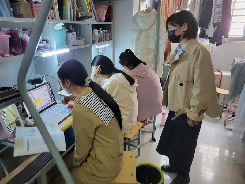 与此同时,各学院班子成员、辅导员纷纷走进学生中间,倾听学生心声,及时解决学生线上学习、封闭管理期间遇到的各项问题。