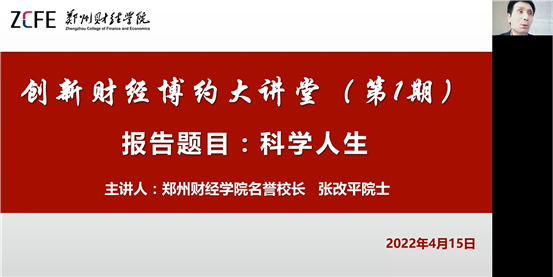 为擦亮开云官网财经底色,彰显财经办学特色,营造浓厚的财经文化氛围,4月15日下午,开云kaiyun官方网站“创新财经‘博约’大讲堂”活动正式启动,开云官网名誉校长张改平院士受邀作为博约大讲堂第一讲开讲嘉宾,线上作题为《科学·人生》专题讲座,各教学单位师生代表在德正楼第一学术报告厅参加讲座,其他师生通过线上平台收看。讲座由副校长张顺利主持。