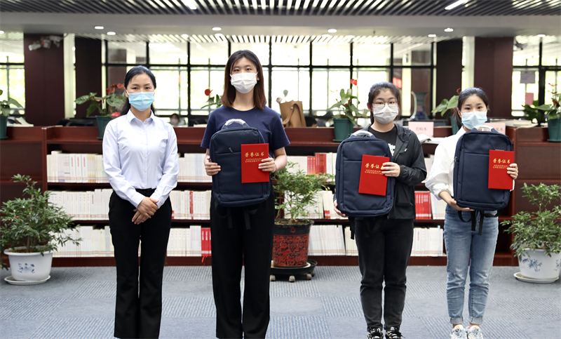 校领导及图书馆相关负责人依次为获奖代表颁发荣誉证书。