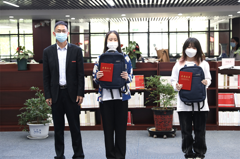 校监事会主席李庆阳为“入馆先锋”获奖代表颁发荣誉证书