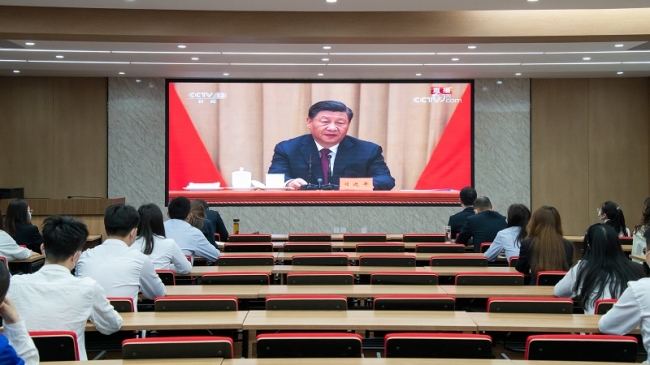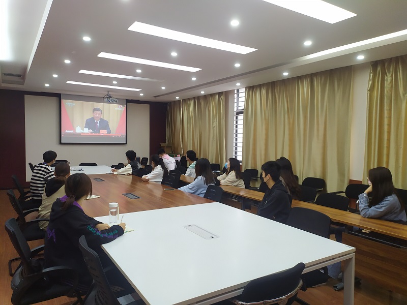 上午10时,副校长陈静,校团委全体老师、各学院团总支书记,校学生组织主席团成员代表、青马学员代表、2021年度河南省“两红两优”等优秀青年代表在德正楼第一学术报告厅集中收听收看大会直播盛况,各学院团总支组织青年团员通过设置分会场、线上参与等形式收听收看大会直播,聆听习近平总书记重要讲话。