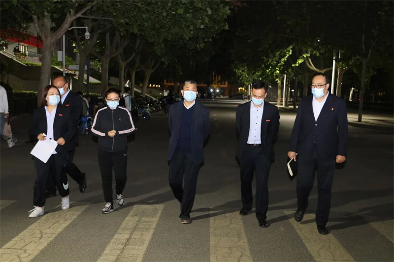疫情之下,为尽快控制本轮疫情传播,整个城市放慢脚步,被迫按下“暂停键”。然而,在实施静态管理的郑财校园里,广大教师却脚步匆匆一边精心上好每一节网课,另一边他们14小时7班接力彻夜巡查校园、深入宿舍送温暖查学情,帮助学生纾解焦虑情绪解决实际困难。这里面也有我们可亲可敬的学校领导,他们与广大值守教师一同巡查校园、深入宿舍,为师生讲思政课、参加师生座谈会,坚定广大师生同心战“疫”的信心,鼓励同学们把握当下读好“万卷书”,厚积薄发行好人生“万里路”。