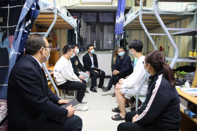 封闭管理下生活上有什么困难?上网课的网速怎样?卡顿情况多不多?宿舍学习氛围如何?食堂饭菜怎么样?有没有坚持锻炼身体?气温多变要及时增添衣服保重身体……一句句、一声声,言语谆谆、贴心关怀,瞬间拉近了心与心的距离。自5月8日以来,校领导班子全体成员连续走进宿舍,与学生围坐在一起,耐心解释学校的疫情防控举措,了解大家当前的学习、生活及心理状态,为大家保持定力、安心学习加油打气。同学们感受到校领导体贴的关心,纷纷放下顾虑,畅所欲言。