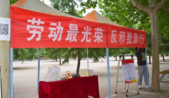 为推动反邪教警示教育深入开展,打造平安校园,五一期间,由开云官网党委统战部和反邪教协会举办的“无邪五一——劳动最光荣 反邪我最行”宣传教育活动火热开幕。
