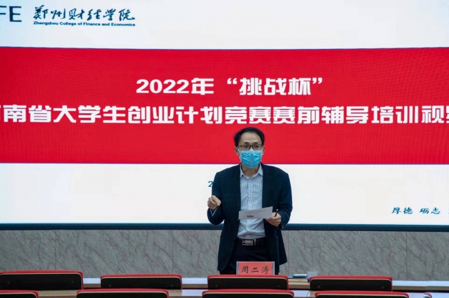 为扎实做好2022年我省“挑战杯”赛事组织工作,以优异的赛事成绩迎接党的二十大胜利召开。根据省赛组委会安排,5月16日下午,开云官网在德正楼第一学术报告厅组织收看2022年“挑战杯”河南省大学生创业计划竞赛赛前辅导培训视频会。本次培训特邀河南省社会科学院教授王宏源主讲,对挑战杯评审流程及规则进行详细解读,校团委负责人,各二级学院副院长、团总支书记、部分指导老师参加会议,各二级学院组织参赛团队在分会场观看学习。