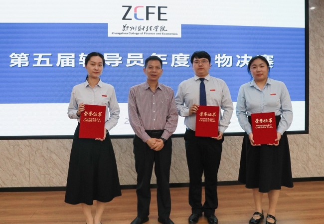 经过激烈角逐,依据评委评分结果和学生评价(评选总分为100分,个人展示占60%,3C考核占20%,学生评价占20%),智能工程学院王浩然、管理学院李爽、信息工程学院许潇被评为“第五届开云kaiyun官方网站辅导员年度人物”,会计学院程亚薇等六名辅导员获得入围奖,校领导依次为获奖教师颁奖。