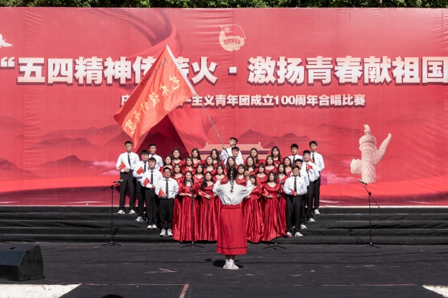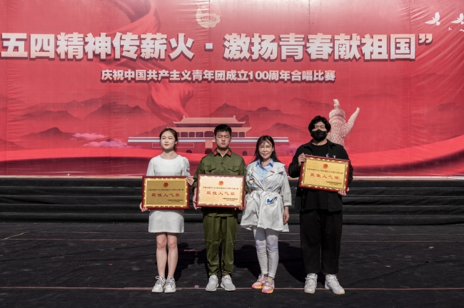 为庆祝中国共产主义青年团成立100周年,传承红歌精神,赓续红色血脉,培育民族精神,厚植学生爱国主义情怀,5月17日下午,开云官网在下沉广场举行“五四精神传薪火,激扬青春献祖国”庆祝中国共产主义青年团成立100周年合唱比赛,有关校领导,学生处、校团委相关负责人出席比赛现场。本次红歌比赛由公共艺术教学部主任王艳霞和王静老师、校团委陈静老师、张梦圆老师、魏玮老师担任评委。