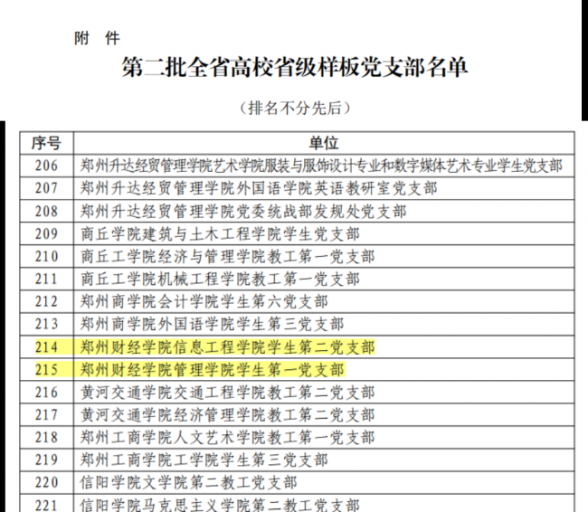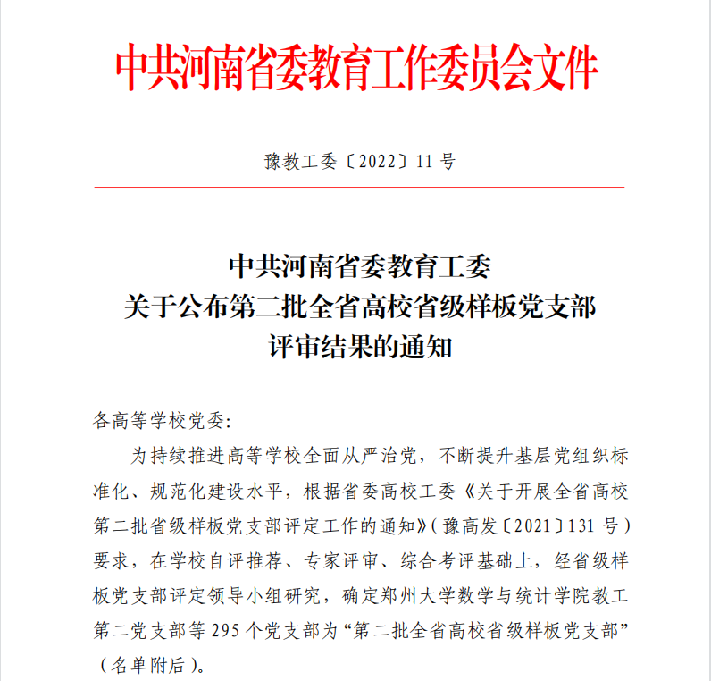 根据《中共河南省委教育工委关于公布第二批全省高校省级样板党支部评审结果的通知》(豫教工委〔2022〕11号),开云官网信息工程学院学生第二党支部和管理学院学生第一党支部被评为“第二批全省高校省级样板党支部”。