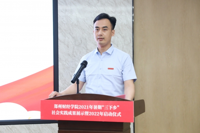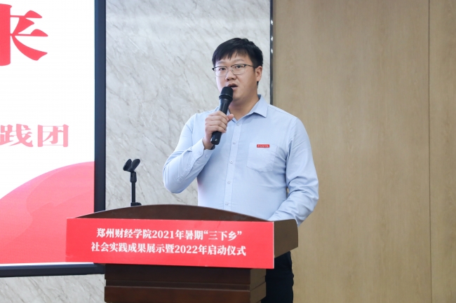 2022年暑期社会实践指导教师代表会计学院程亚薇老师,向同学们强调了社会实践活动的重要性,并阐释了暑期社会实践的真正意义,分享了暑期实践团队为助力乡村振兴发展作出的努力,以及他们在实践中不断总结经验,推陈出新,奋力前行的成长经历。