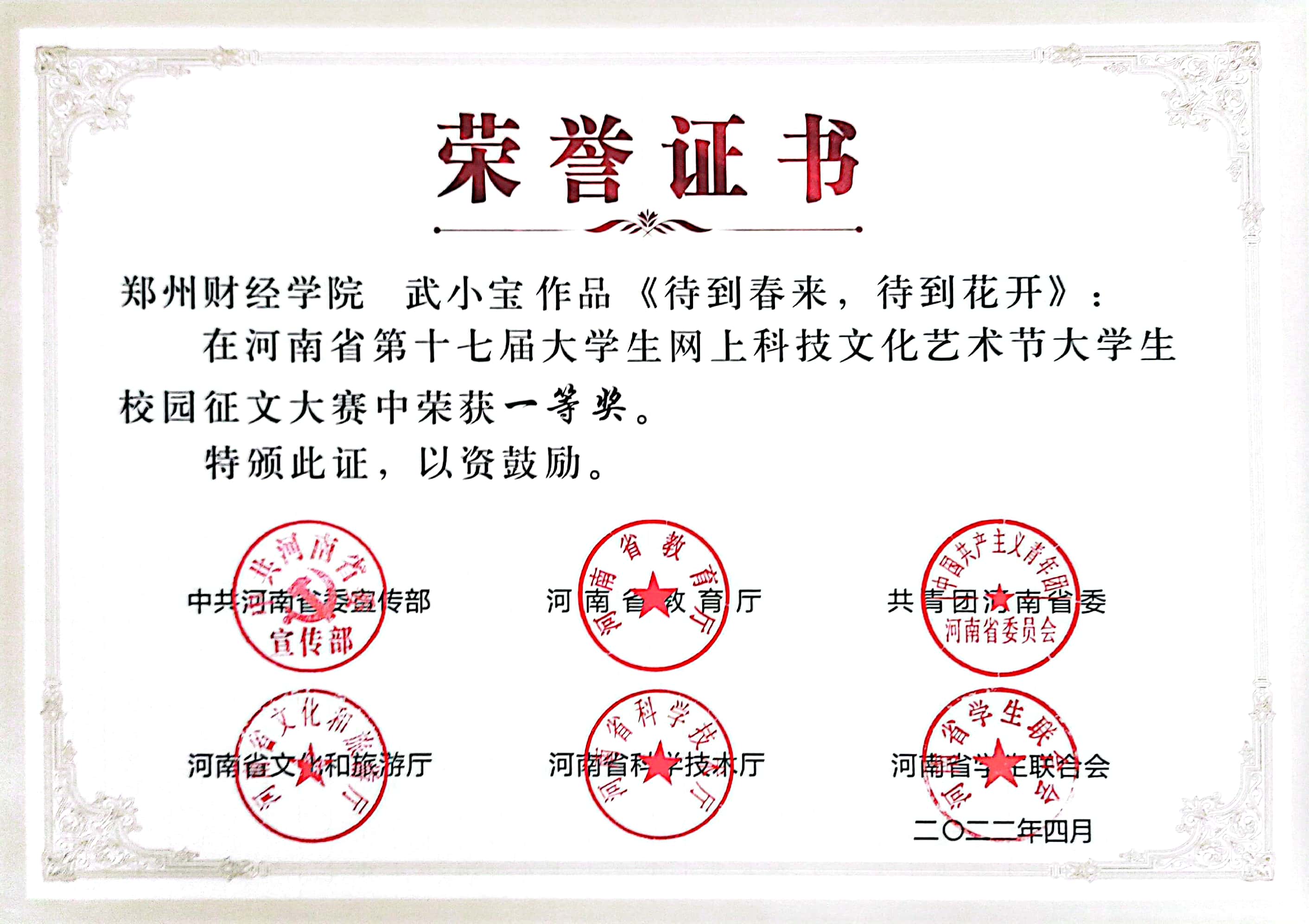 开云官网在河南省第十七届大学生网上科技文化艺术节中喜获佳绩