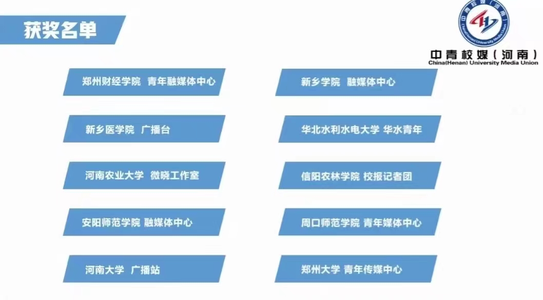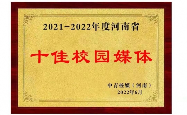 荣获2021-2022年度中青校媒(河南)“十佳校园媒体”荣誉称号