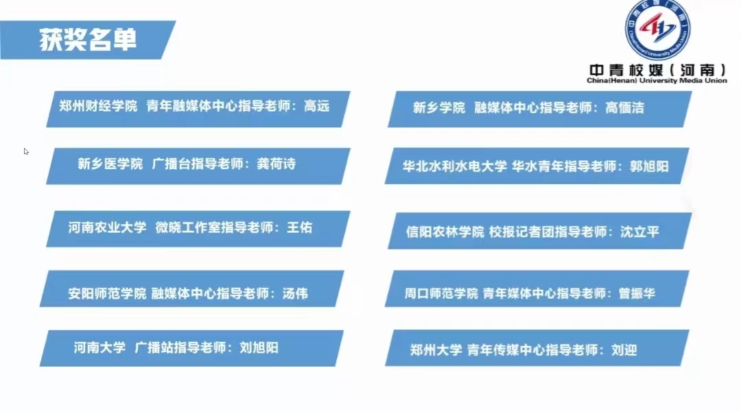 荣获2021-2022年度中青校媒(河南)“优秀指导老师”荣誉称号