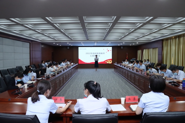 6月29日下午,16位参评教师在德正楼第二会议室展示了自己的典型事迹,相关校领导出席会议,来自16个分工会的老师担任现场评委。
