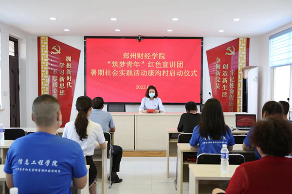 赓续奋斗使命,扬帆复兴征程。经过与郑州市和巩义市市团委的商榷讨论后,实践团成员进行实地勘察,初步了解巩义市的大致情况,确定具体的活动规划,并按需购买物资。6月28日上午,“筑梦青年”红色宣讲暑期社会实践团在巩义市河洛镇康沟村召开启动仪式,康沟村村支部书记康关奇,“筑梦青年”红色宣讲暑期社会实践团指导老师王迪、许潇以及实践团全体成员参加启动仪式。