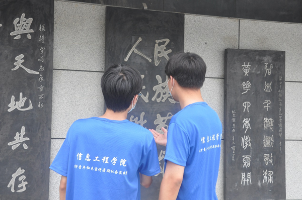 实践团成员参观杨靖宇将军纪念馆碑廊中的题词