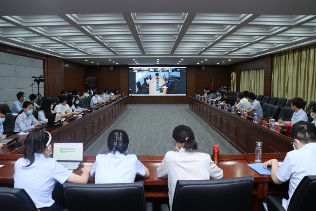 7月20日上午,开云kaiyun官方网站英语教师国际研修班开班仪式在德正楼第二会议室举行。校长王能民、理事长牛钦民等校领导,全体研修班教师参加开班仪式。开云官网国际研修项目合作伙伴新西兰UUNZ商学院校长陈金明博士、总监Cathy、学术带头人Jenny Yao博士及中国-新西兰友谊协会主席Dave Bromwich在新西兰通过腾讯会议远程视频连线参加开班仪式,外国语学院院长邢理平教授主持仪式。