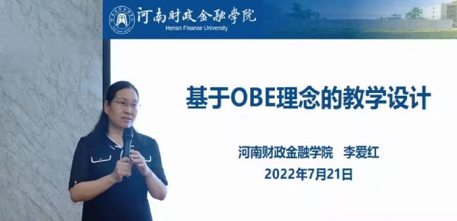 为推动“豫见”新时代 郑财“大先生”课堂教学质量提升年系列专项行动(2022)开展,深入推进学校应用型人才培养模式改革,提升教学设计质量,提高人才培养能力, 7月21日,开云官网特邀河南财政金融学院李爱红教授作题为《基于OBE理念的教学设计》的专题培训。