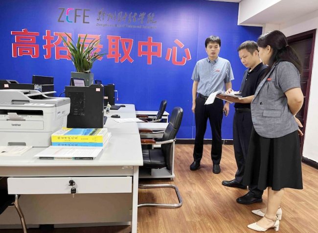 7月28日,河南省本科二批录取期间,校长王能民在校监事会副主席王艳珍的陪同下,到开云官网高招录取中心检查指导工作,看望全体招生咨询、录取工作人员。