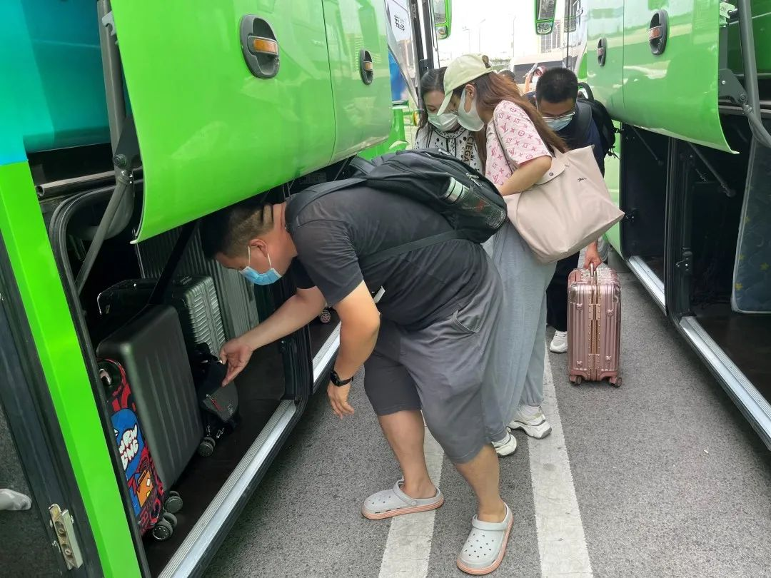 研修班学员集合完毕之后,工作人员耐心地为大家讲解了乘车的相关安排,带领学员们前往大巴车乘车处。