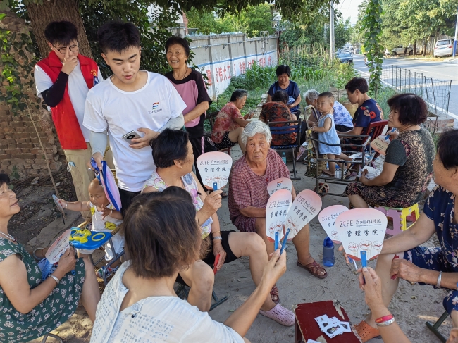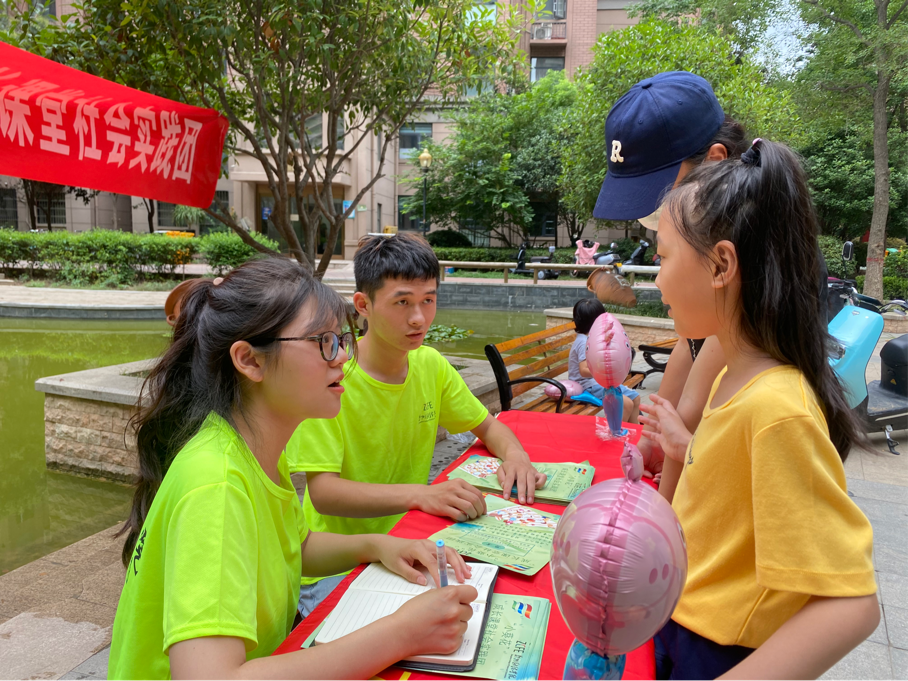 教育学院“小葵花”暑期实践团在郑州市紫东郡小区设立咨询站点