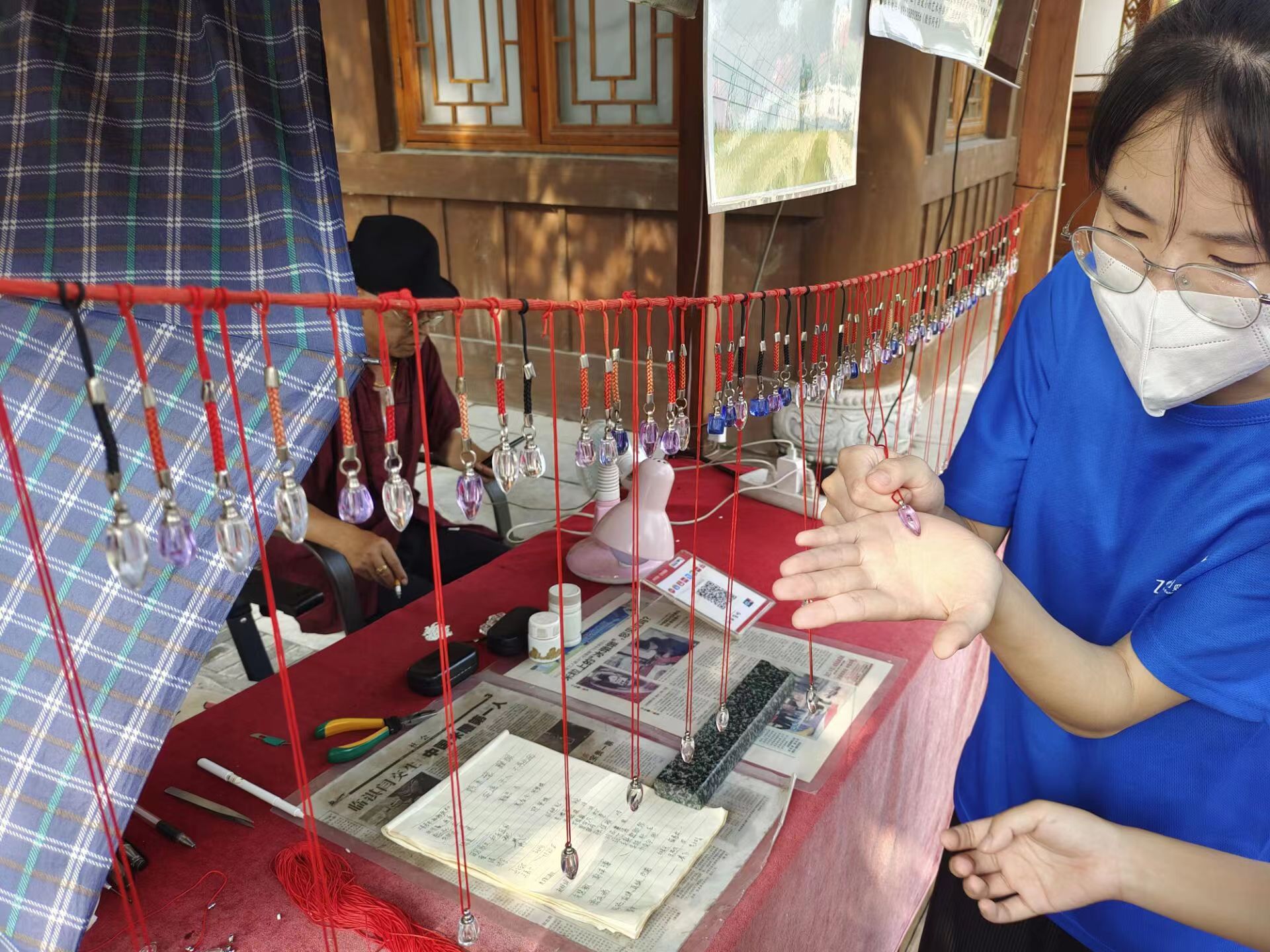 商学院“飞鸟”暑期社会实践团洛阳站团队成员观赏非遗小米雕刻