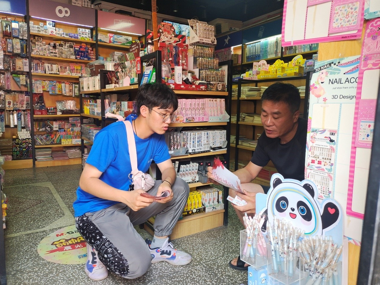 信息工程学院“反邪教联盟”暑期社会实践团成员们给商户讲解反邪知识
