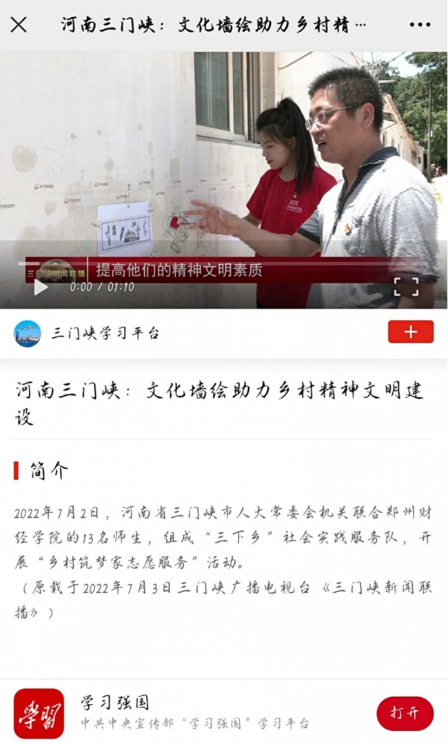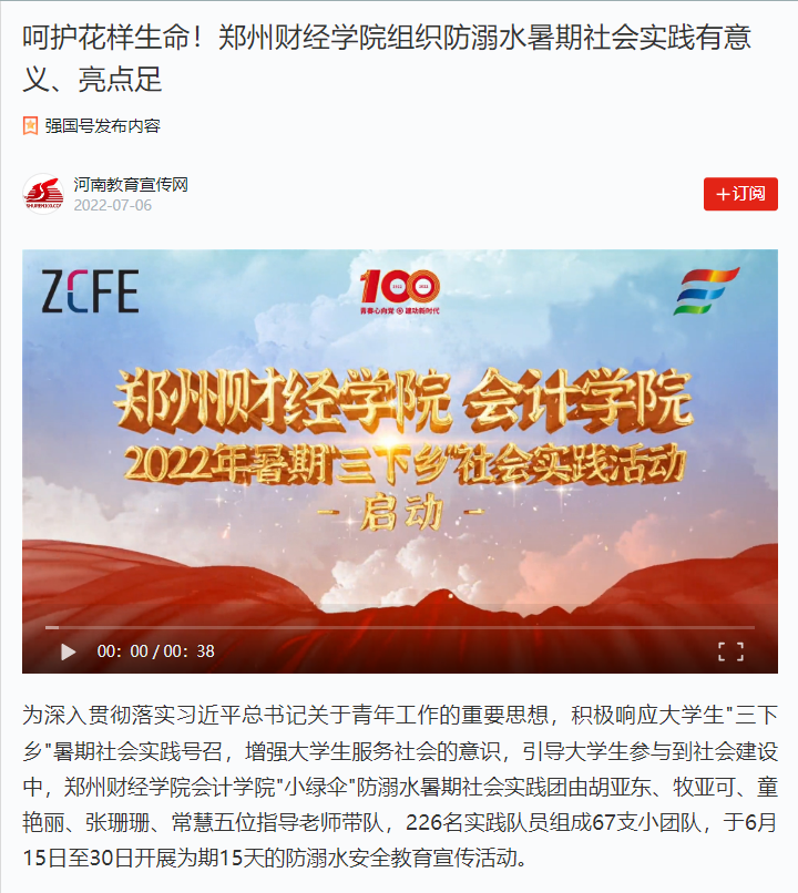 学习强国平台报道开云官网会计学院“小绿伞”防溺水暑期社会实践团