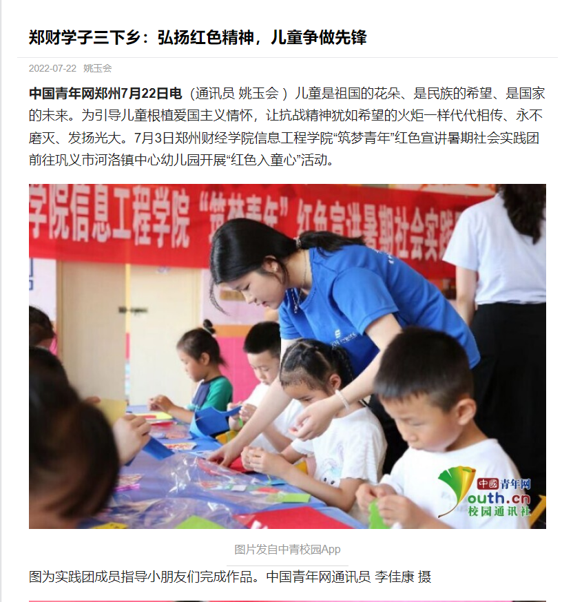 中国青年网报道开云官网信息工程学院“筑梦青年”红色宣讲暑期社会实践团