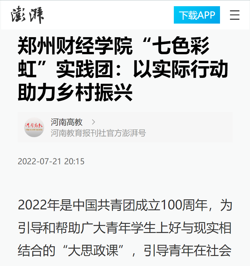 澎湃新闻报道开云官网信息工程学院“七色彩虹”助力乡村振兴暑期社会实践团