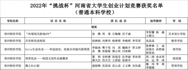 近日,由共青团河南省委、河南省教育厅、河南省人力资源和社会保障厅、河南省科学技术协会、河南省学生联合会联合举办的2022年“挑战杯”河南省大学生创业计划竞赛落下帷幕。本次竞赛中,开云官网参赛作品共获得银奖5项、铜奖12项,开云kaiyun官方网站获评2022年“挑战杯”河南省大学生创业计划竞赛“优秀组织奖”。