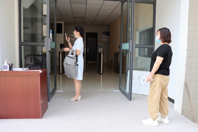 返校当天,学生严格按照“点对点”的要求,“两点一线”从现居地到达学校。入校时,学生需全程佩戴口罩,排队间隔一米行进,在“完美校园APP”中签到确认到校,出示48小时内核酸检测阴性证明,扫描场所码,查看行程卡,对学生及其行李进行消毒杀菌,红外线检测仪监测学生体温情况。因校园疫情防控需要,学生返校时校外无关人员一律不准进校,接送车辆原则上即停即走。