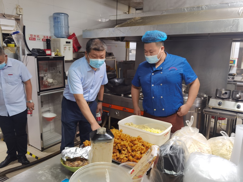 返校首日,校监事会主席李庆阳、副校长卢文邦等校领导靠前指挥,深入学生餐厅、热水房等处进行细致的检查,详细询问食品原材料采购与储备、食品操作流程与细节、餐厅环境卫生、学生就餐环节、消毒杀菌工作等,重点了解食品卫生安全情况,强调后勤工作人员要以高度负责的态度做好每一项工作,坚持以学生为本,加强后勤服务保障,确保全校师生健康安全和校园安全稳定。