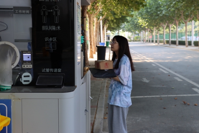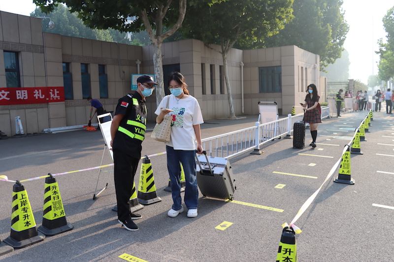 考虑到返校学生行李较多,学校党员志愿者多次往返于校门口和宿舍楼之间,用三轮车帮学生搬运行李,以严格的防疫措施和贴心的服务迎接学生返校。到达宿舍楼后,学生在宿舍门口划定区域内间隔1米距离排队,扫描场所码,再次进行体温测量、行李消杀。核查无误后,经过登记学生方可进入宿舍楼。新学期开始,学生宿舍门禁管理系统即将启用,有助于及时准确获取宿舍管理的各类信息,大幅提升宿舍管理的科学性、高效性、智能化程度,为校园宿舍安全保驾护航。