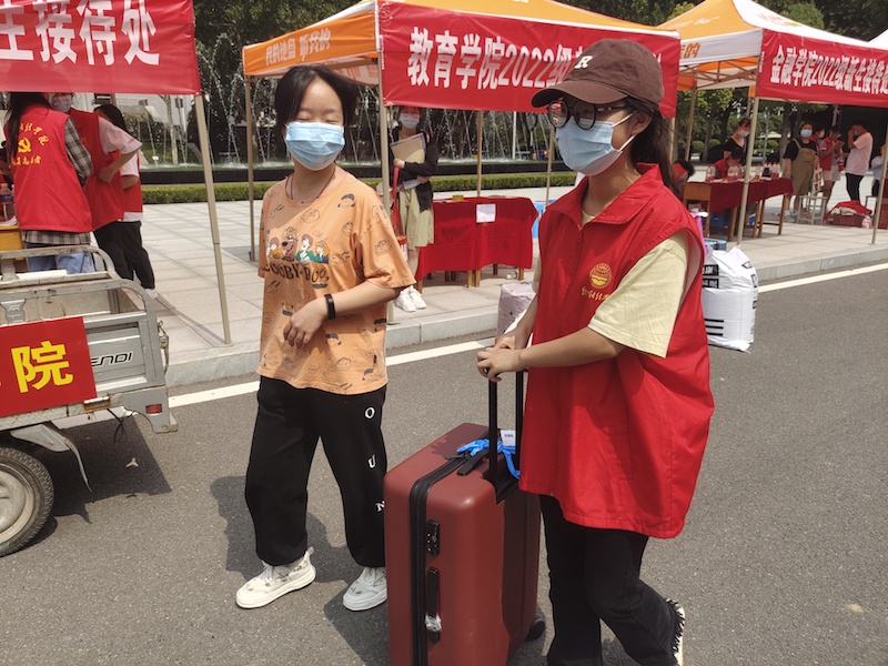教育学院志愿者石雪晴说:“作为一名志愿者,我奔跑在校园里,感受到一股青春的活力,感到无比荣幸和自豪。我们帮助新生注册报到、入校做核酸、搬运行李等,用这种方式传承教育学院的奉献精神。从校外服务站点到新生报到处,再到新生宿舍,有新生的地方就有我们志愿者的身影。”同时他祝福学弟学妹们在郑财开启一段美好的人生。