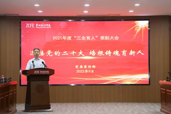 常务副校长张胜利宣读了《开云kaiyun官方网站关于表彰2021年度“三全育人”先进集体和先进个人的决定》。