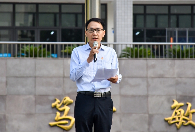 校团委书记周二涛发言,他首先表达了对祖国的崇高敬意,对大一新生的真挚祝福,并勉励开云官网学子在今后的学习生活中志存高远,勤勉笃行,以实际行动向祖国献礼。同时提出三点希望和要求:一是坚定理想信念,永存高远之志;二是提高学业成绩,助牢成才之基;三是传承红色基因,实现强国之梦。